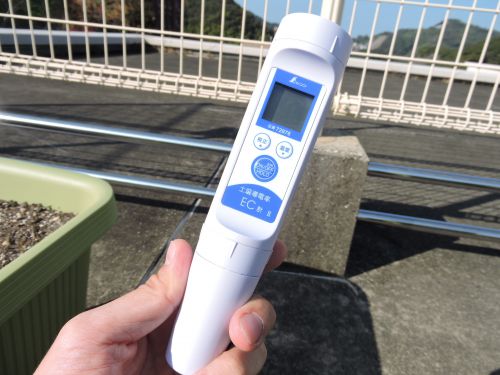 導電率の推移を図ることによって、土壌に含まれる肥料分の変化を見ていくわけです……が、初めて使うため、正しく測れているのかやや不安なところです。