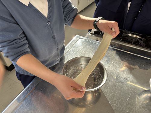 グルテンの形成のされ方や発酵についてなどパンについて科学的に学習後、せっかくなので実際のパン作りにもチャレンジしました。
